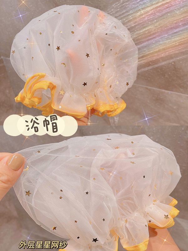 泡澡的时候如果担心头发会湿,就带上防水浴帽,材质很不错,还有花边,绝绝子~