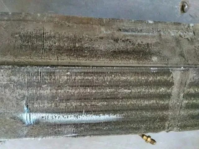 制冷剂就是我们俗称的冷媒,它是空气能热水器制热的关键性物质。空气能热水器要完成制热,必须以冷媒作为中间介质,不断吸收空气中的热量。然而,空气能热泵使用时间长,有可能出现冷媒泄漏的情况。冷媒量一旦减少,自然会造成设备制热能力下降,进而导致热水的温度出现明显的下跌。解决方法很简单,联系售后人员,补充冷媒。04.蒸发器翅片污垢过多