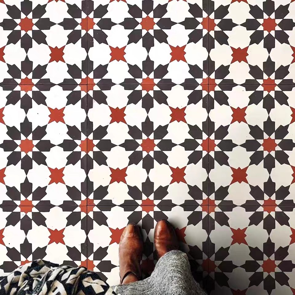 水泥表面是微细毛孔结构,触感更接近皮肤的细腻而非亮面砖的玻璃感。在砼语手工水泥花砖未形成包浆亮化之前会有比较强的表面阻力,有防滑的特性。而在日常使用中,随着长时间的使用、清洁、养护,砼语手工水泥花砖的表面会形成包浆,图案色彩会因此显得愈加鲜艳和润泽。