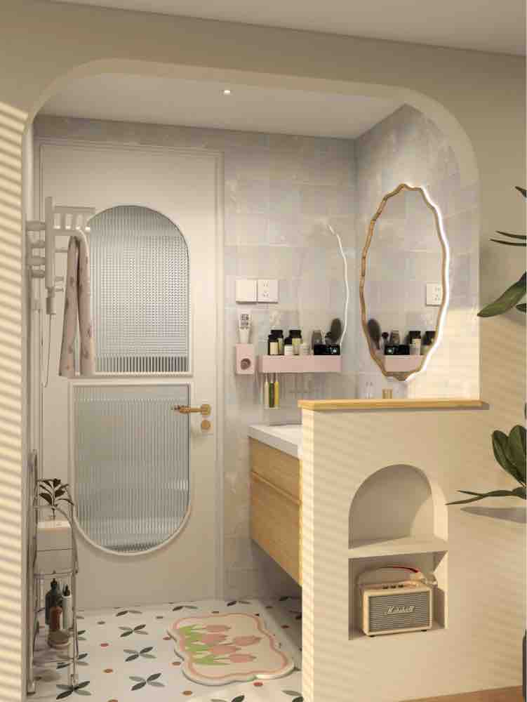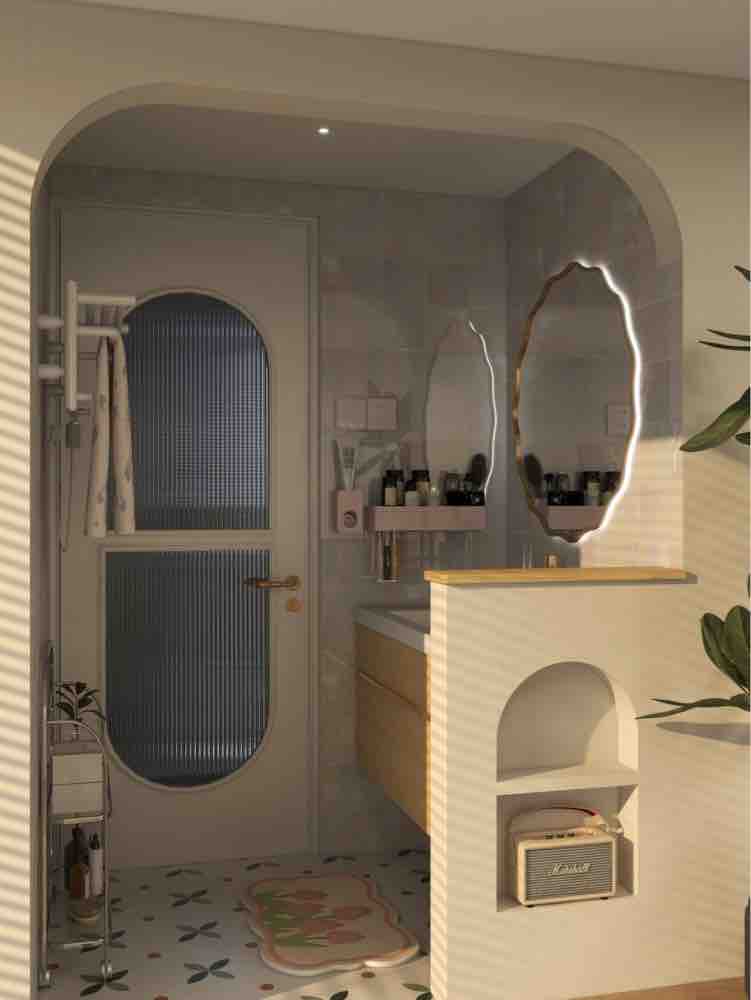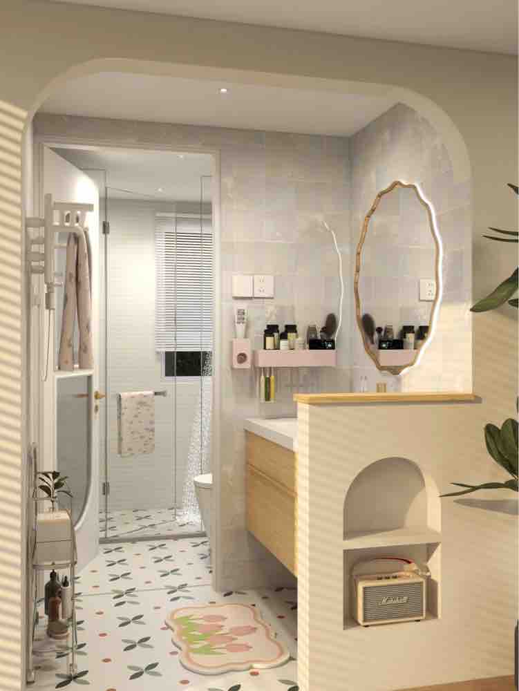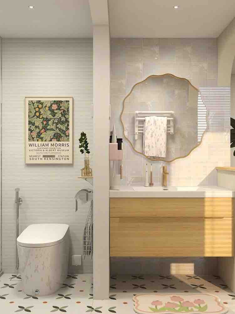 日落时的浴室!颜值高还实用的浴室好物 · 浴室柜 原木风,适