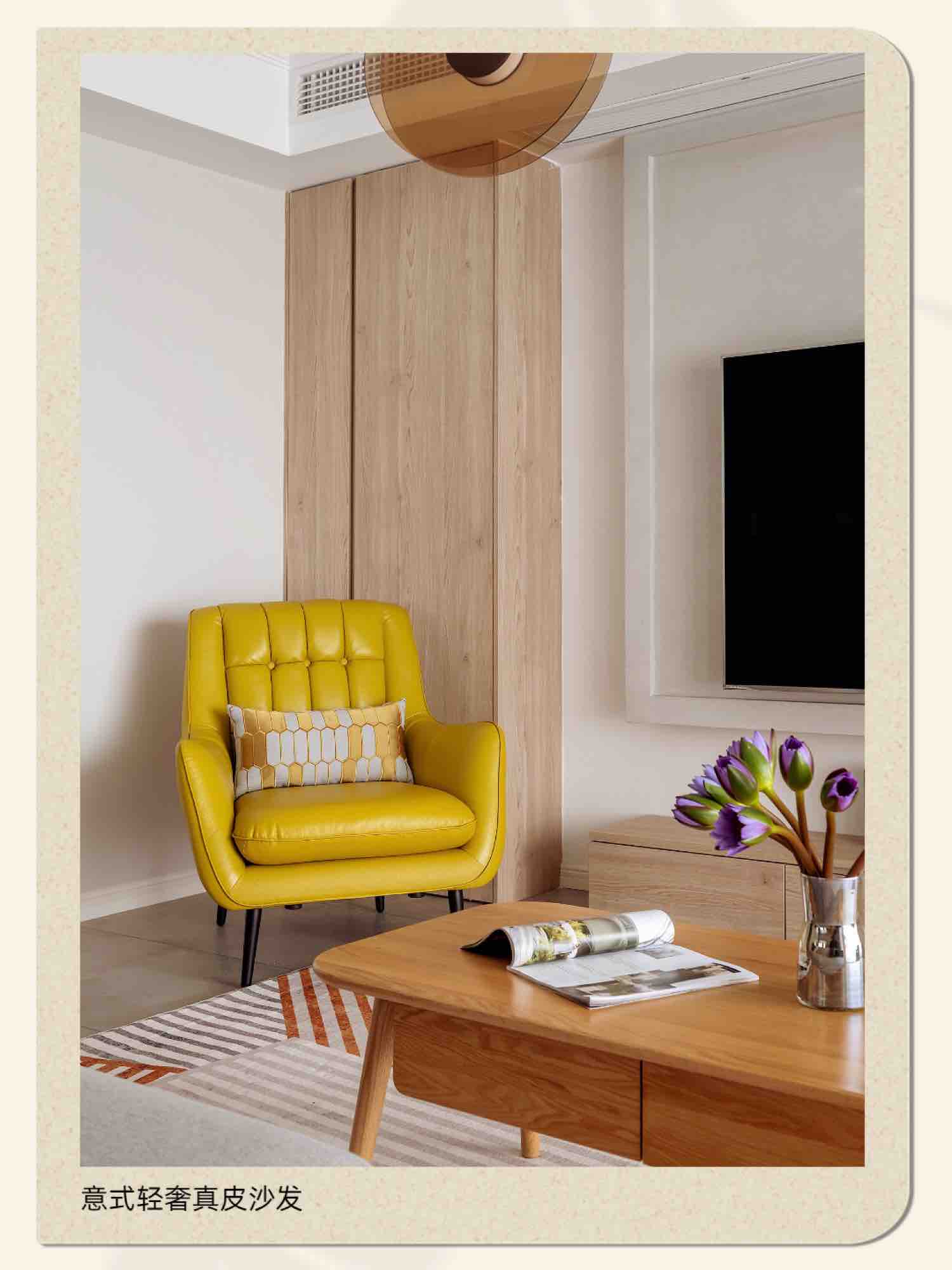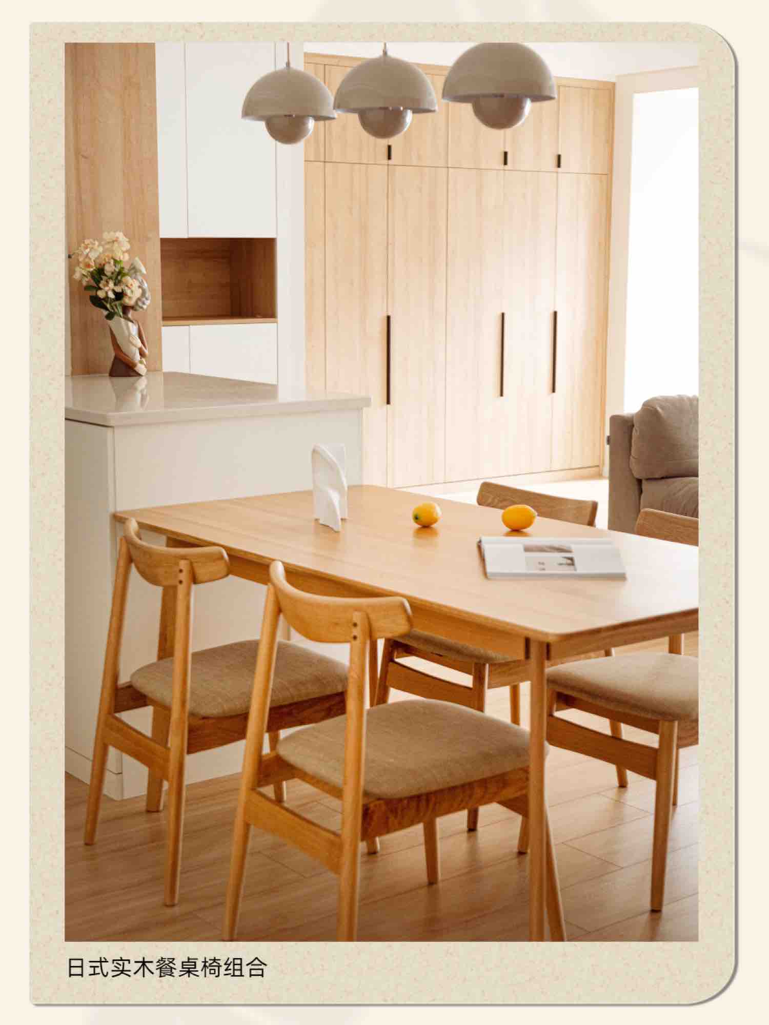 🌈P2-4中整体色调实木色打底,空间色调整体统一。原木色的茶几、餐桌椅、柜子、书架,既不显突兀,又保留了原本的温馨调调,夯实了整个家的温润和质感,高级感满满~