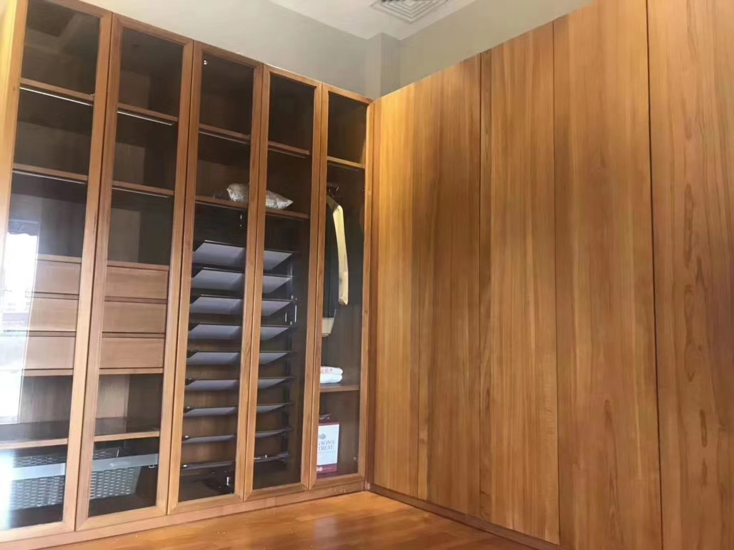 一、男士的衣帽间大多数男士的衣物是永远比女士少的,因此不需要太多隔层,多设计几个抽屉,用来放置皮带、领带、内衣。让整个收纳看起来整齐明了,不但拿取方便,而且也是高品质生活的象征。