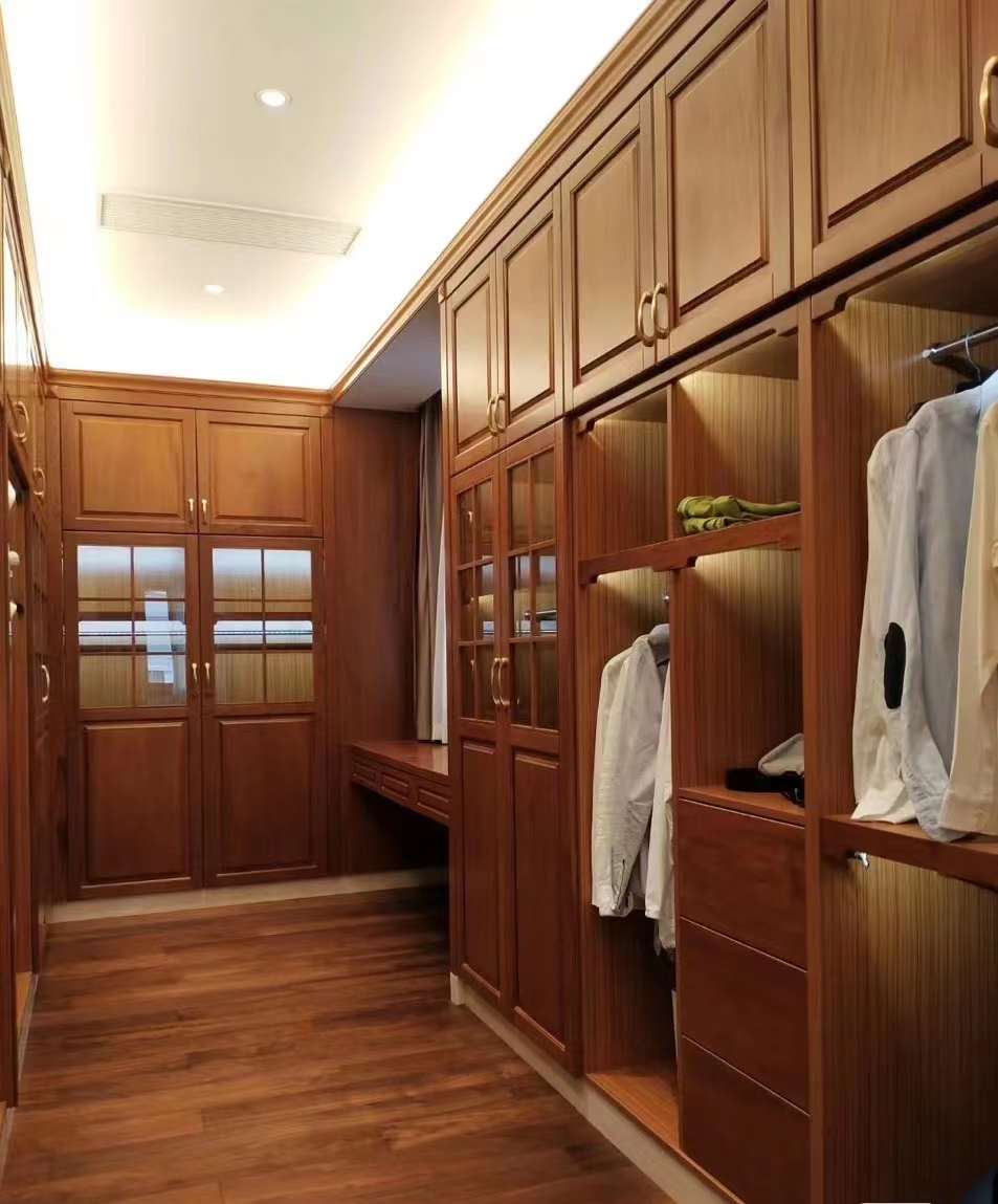 二、女士的衣帽间女士的服饰比较多样,连衣裙,长风衣、大外套等等因此女性衣帽间要尽可能多的布置长度较长的挂放区。女士的装饰品也更加多样化一点,除了必要的隔层收纳外,则更多地考虑到大而完整的隔层空间,可以满足包包、帽子等杂物收纳。