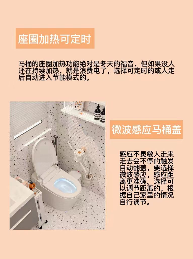 1⃣座圈加热的功能要选人体感应,人坐上去就自动开始加热,人离开就自动进入到节能模式;