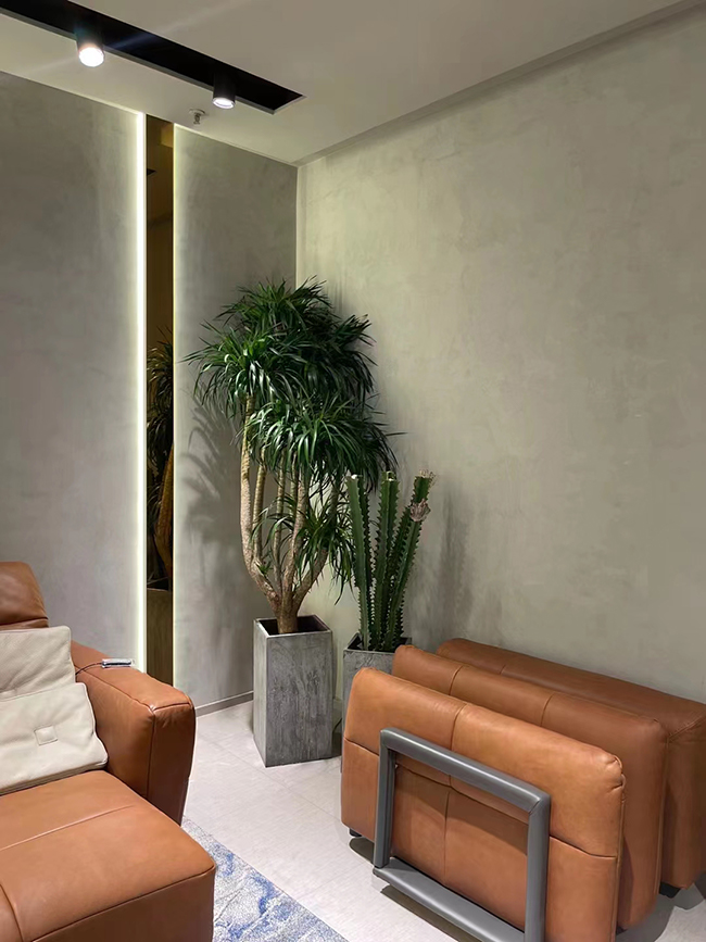 二、水泥漆施工墙面前需要注意的地方1.确保基层平整坚固无论基层做什么,仿水泥漆都很重要,水泥漆基层应平整牢固,以保证后期工程质量。2.保证水泥漆材料的质量做水泥漆墙面,水泥漆本身是很重要的,根据规格,如何调整比例,不要私下添加东西,以免影响水泥漆的质量。3.施工经验是必要的水泥漆需要非常高的施工经验手法,手法越丰富,装饰的墙面水泥漆效果越好,包括刀纹效果,质量差可能会影响使用寿命,但如果效果不好,会影响整体效果和业主的情绪。水泥漆涂料适用范围:比如像一些高档酒店、花园别墅、广场、雕塑、电视背景墙、民宿、大型商场内墙装饰,所以水泥漆适用范围广泛,任何地方都可以使用水泥漆来装饰,而且效果还是非常的好,大家可以看一下使用水泥漆装饰的效果图。