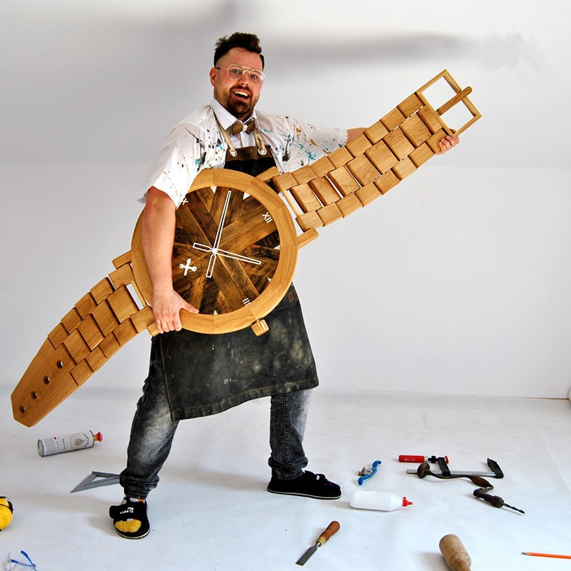 艺术品一样的手表形状橡木大挂钟你会摆在家里哪里呢?