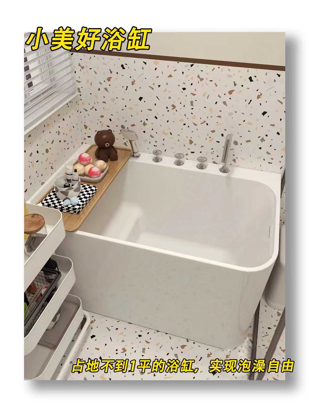 占地不到1平,小浴室的泡澡🛀🏻福音,浴缸有直角直接贴合墙壁,没有卫生死角,亚克力双重保温的材质让水温下降减慢,浴缸虽然迷你,但是泡澡很舒服