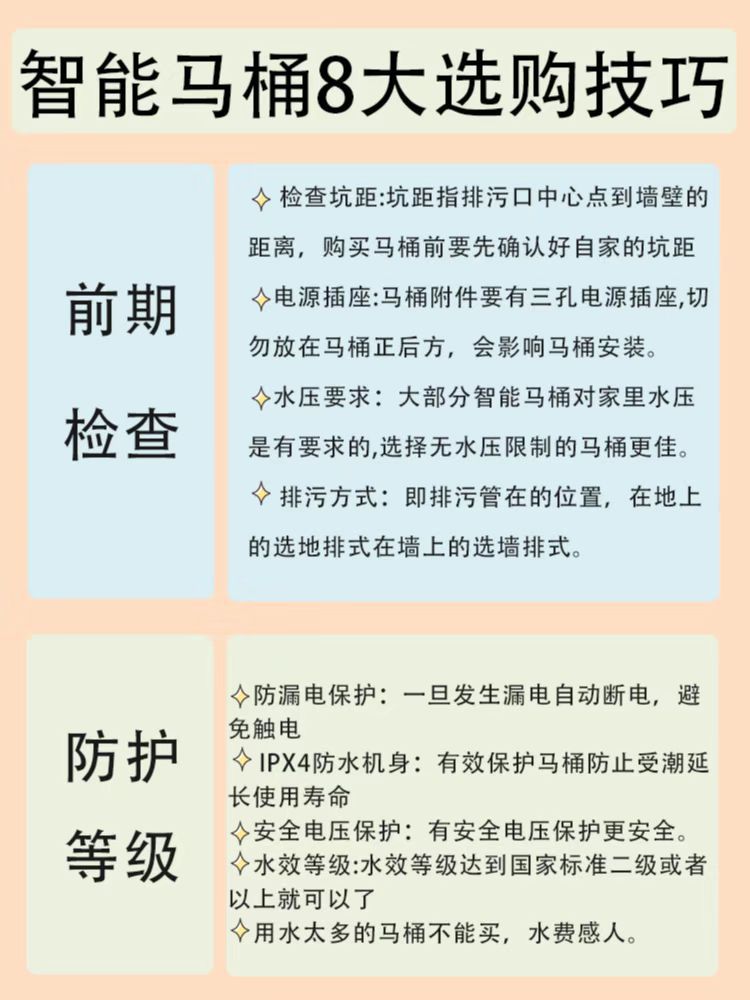 水压要求:大部分智能马桶对家里水压是有要求的,选择无水压限制的马桶更佳。