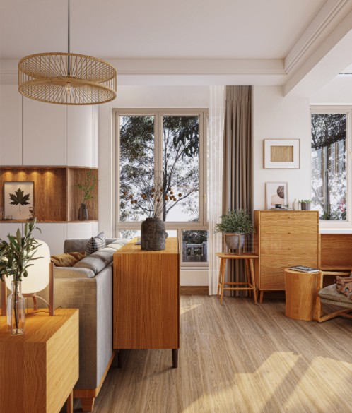 项目信息面积:138m²风格:清新田园风设计说明:本案业主平时喜欢宅在家里看书写字,和家人喝喝茶聊聊天。她想要的平静,不是避开车马喧嚣,而是在心中修篱种菊,家人闲坐灯火可亲。顺辉设计师根据空间布局,结合业主需求,采用木纹理石纹作为空间主调,一起来感受诗人笔下的“户庭无尘杂,虚室有余闲”吧!PART 1 :客餐厅Living room
