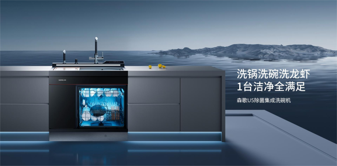 森歌u5除菌集成洗碗机经常下厨或者打扫卫生的人都知道,相较于烹饪,厨房清洗耗时更长也更累。洗餐具、洗果蔬、垃圾处理每一项都很消耗精力。在厨房清洗功能的升级改造上,森歌u5集成除菌洗碗机围绕洗餐具、洗果蔬、净水、消毒、垃圾处理五个方面提升下厨体验。可以根据餐具污浊程度自动匹配清洗模式的AI智慧洗功能的升级应用,以及围绕“洗、烘、消、存”四方面展开的四重除菌系统的开发,森歌u5除菌集成洗碗机能一步到位解决洗碗、餐具消毒和存储的问题,避免了很多复杂繁琐的步骤。家里有了森歌u5集成除菌洗碗机,即可迅速进入更高阶的高品质下厨生活。举例来说:常规餐具从清洗到收纳稍有不注意就会产生发霉现象。森歌四重除菌系统通过“75°C高温冲洗除菌、70°CPTC热风烘干除菌、UV紫外线杀菌、72小时新风鲜存长效抑菌”四步,就可以帮助我们全面告别餐具清洗、除菌和存储的问题。值得一提的是,除菌率高达≥99.99%,完全可以帮助我们清除各种细菌,保护全家人的饮食健康。仅凭借行业首台四星级除菌系统,森歌u5就站在了行业领先地位。果蔬海鲜清洗机、净水器与垃圾处理器等功能,还能在下厨的全过程发挥作用,提升厨房生活的品质和下厨的效率。
