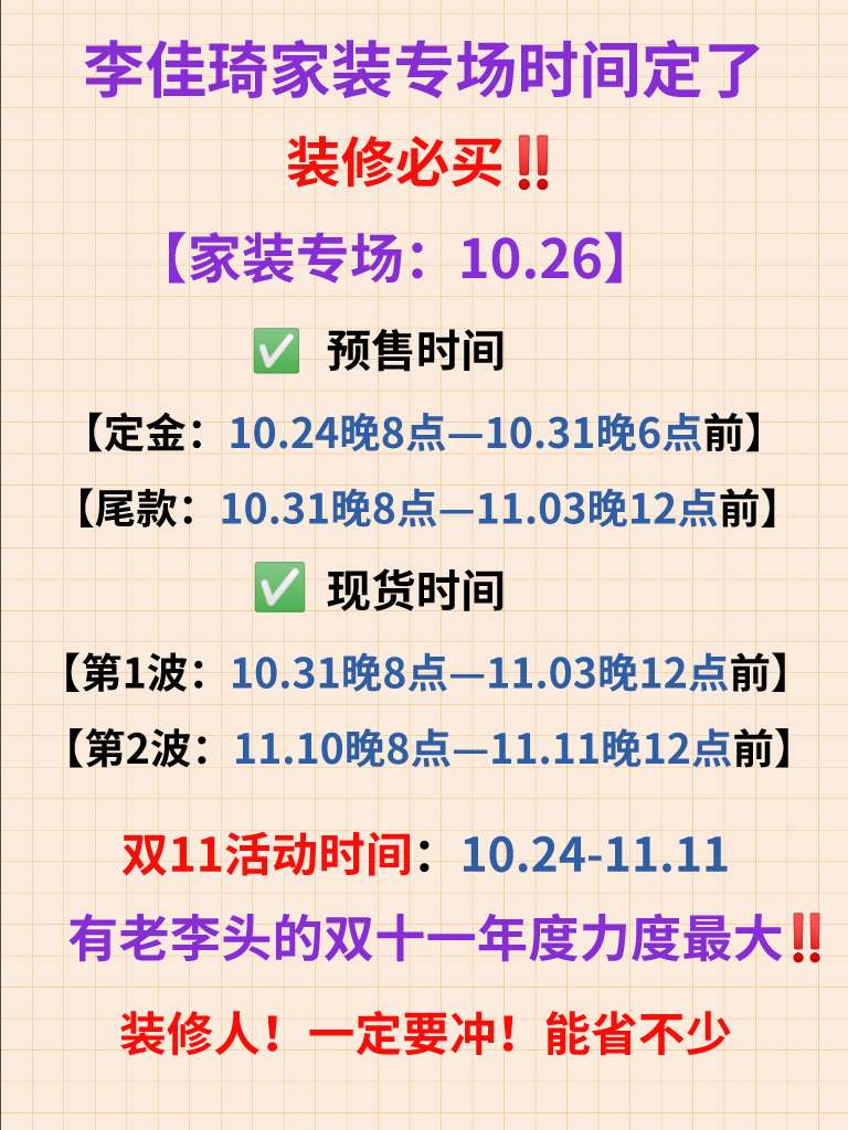 👀哇!李佳琦家装节预告是10.26日,要买家电的朋友一定要蹲住这天哦~