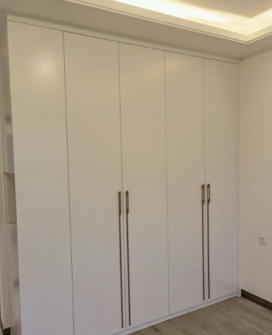 同时,这些蔷薇白门板也根据其大小跟造型搭配了长度不一的金色金属门把手,白色与金色这两种颜色的组合就极具高级感,特有华贵的那种质感。