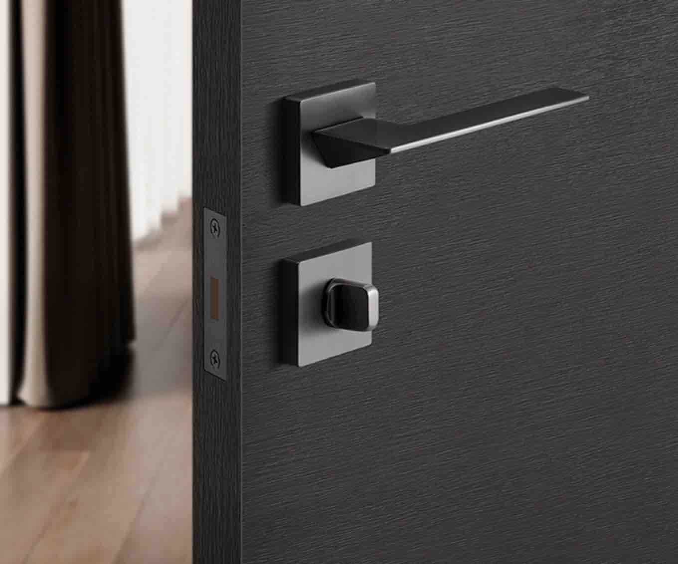 隐形门的门锁和把手只有门内这面有,和普通门有所不同,选购时注意选择隐形门专用款即可,市面上这类产品非常多,比较成熟。