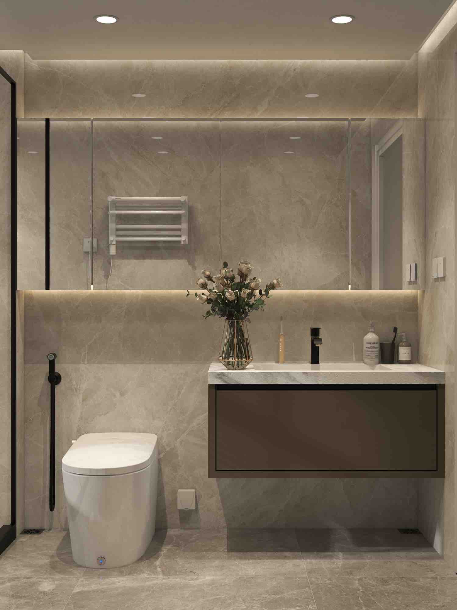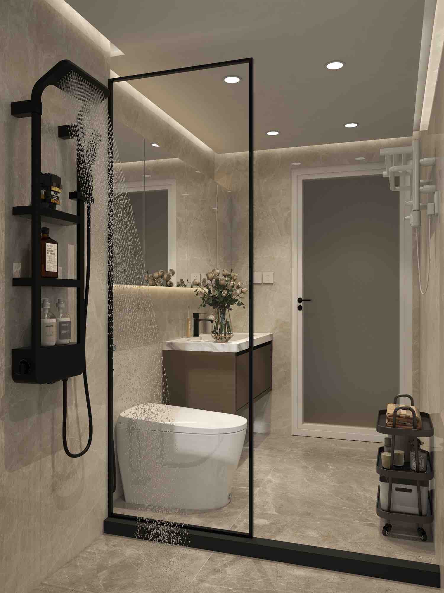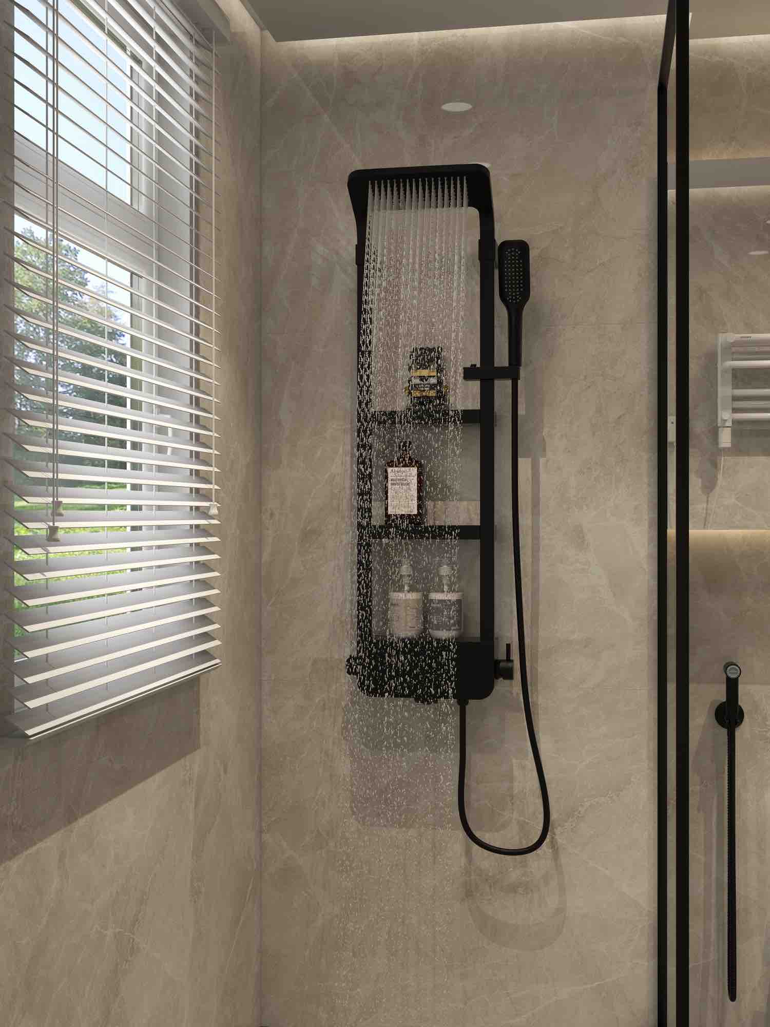 简简单单的装修,黑色花洒和灰色浴室太配了! 简简单单的灰色