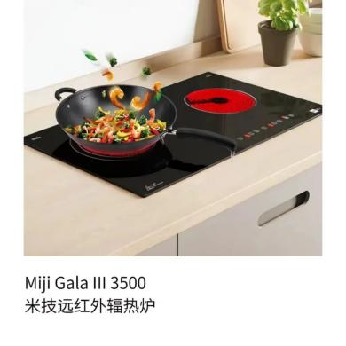 Miji Gala CEE 3500 推荐理由:· 嵌入式双灶电陶炉,不挑锅具,平底耐高温锅具均可使用。· 双灶同时烹饪,炒菜煲汤两不误!· 机械旋钮易操作,体验清凉厨房,享受安全烹饪。02家有宝贝,有它更安全小朋友总是对世界充满好奇,刚安顿好准备去为他准备晚餐,转眼他就跟在身后和你一起钻进厨房。面对明火、废气、油烟,一扇隔在厨房外的门,也切断了孩子对厨房的好奇心。