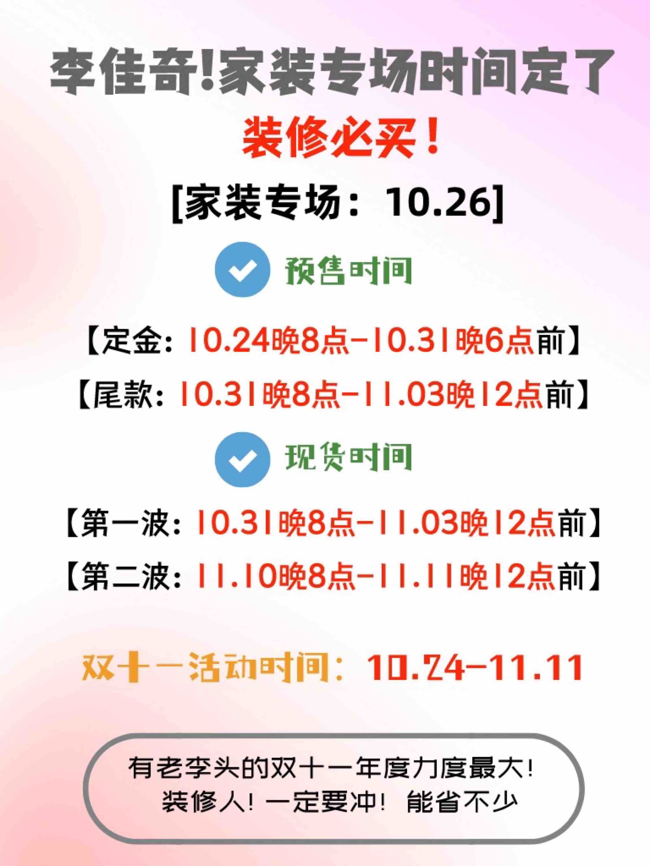 齐家网> 齐家装修论坛> 匠屋> 快传下去!李佳奇双11家装节专场时间定啦