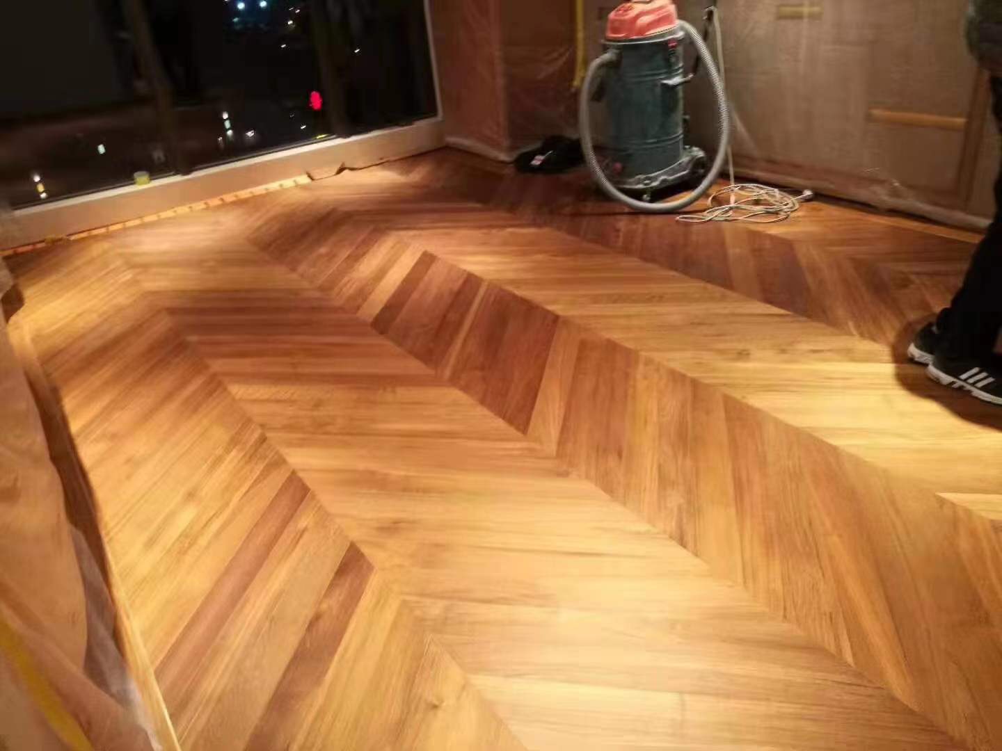 3、人字拼人字拼花因使地板曲折分布呈“人”字形而得名,有着很强的立体感优势。缅甸柚木人形排列,所形成的箭头般的图案会有带动视线走动的视觉效果。人字纹地板的要点就是单块地板最好细长一点,否则会显得犬牙交错。