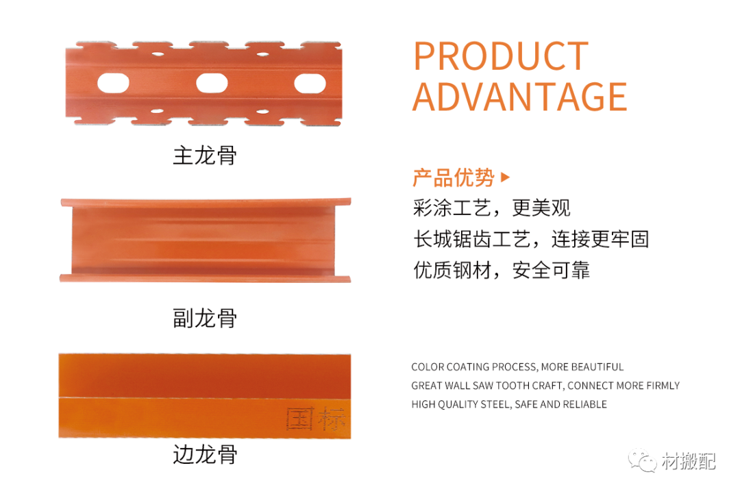 轻钢龙骨,用作吊顶工程的骨架,这种轻钢龙骨是以连续热镀锌板带为原材料,经冷弯工艺轧制而成的建筑用金属骨架。用于以纸面石膏板、装饰石膏板等轻质板材做饰面的非承重墙体和建筑物屋顶的造型装饰。适用于多种建筑物屋顶的造型装饰、建筑物的内外墙体及棚架式吊顶的基础材料。但材搬配辅材不满足于这样一个“标准”的。材搬配辅材电商平台,还在传统工艺上进行改造升级,镀锌的同时还镀上一层彩涂,更美观更防腐。