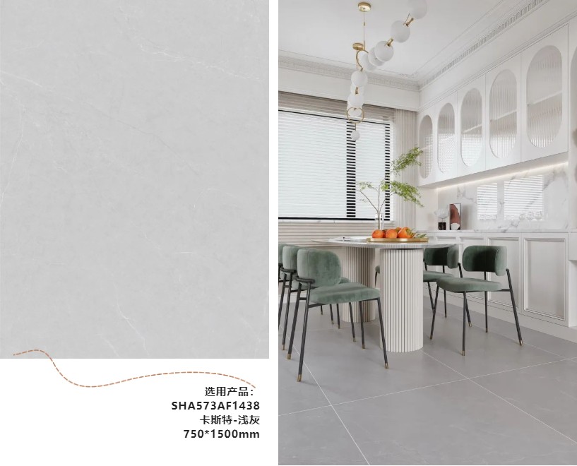 选用产品:SHA573AF1438卡斯特-浅灰750*1500mm法式轻奢,色彩缤纷的搭配,既有冲突对比,也有和谐优雅,诠释了法式的精致与奢华。Part 02对称布局浪漫的灵魂法式轻奢空间讲究对称布局,几何线条的设计,创造高格调的法式轻奢空间。法式轻奢在空间中的对称是柔和不着痕迹的,舍弃繁复的造型,突出中轴线的对称。