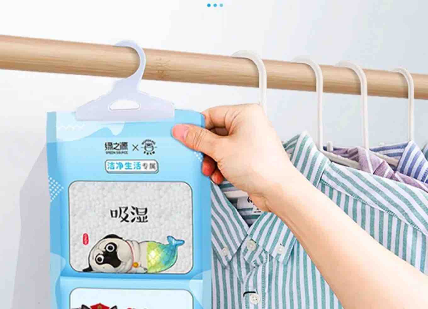 除了以上方法,我们还可以借助吸湿产品来保持衣帽间的干燥。例如某宝售卖的吸湿盒、吸湿包。值得注意的是吸湿产品里主要起作用的是氯化钙或吸水树脂,因此我们在购买时一定要选择氯化钙或吸水树脂含量高的,家里有小孩的,为了孩子的安全,一定要将该产品放在小孩不容易接触的地方,以防被误食。