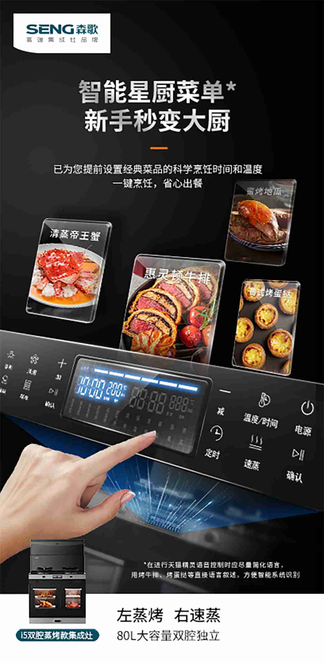 (森歌i5双腔蒸烤集成灶,智能菜谱)