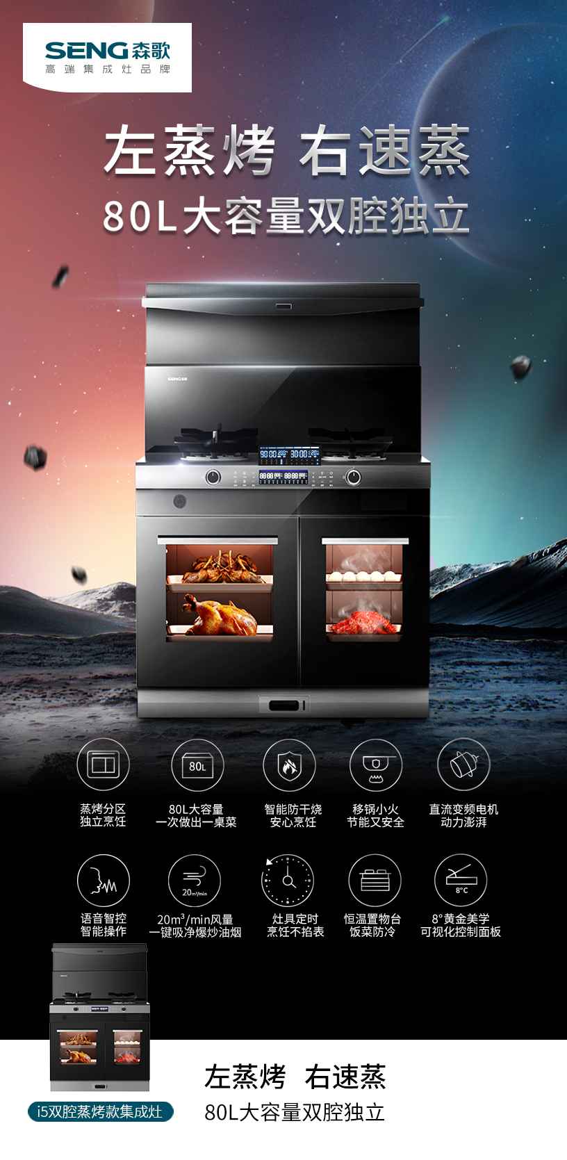 (森歌i5双腔蒸烤集成灶)