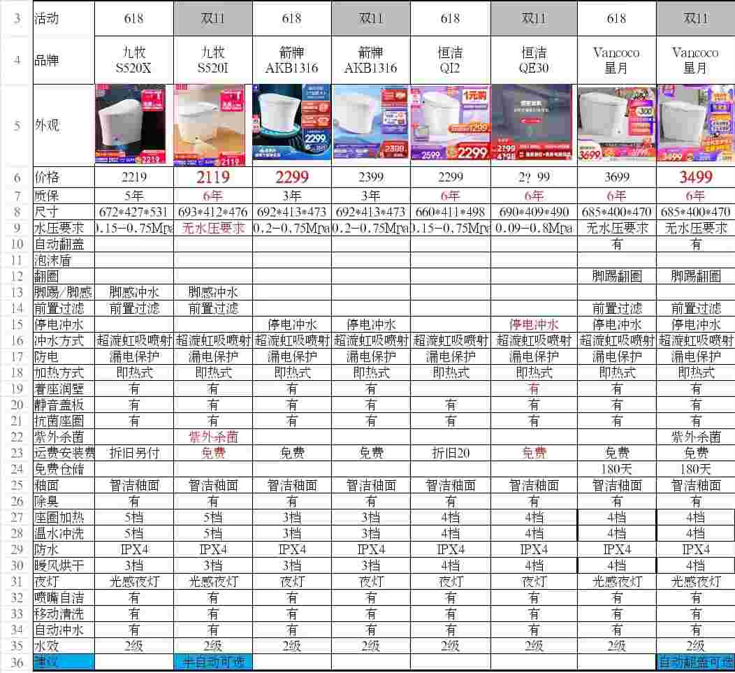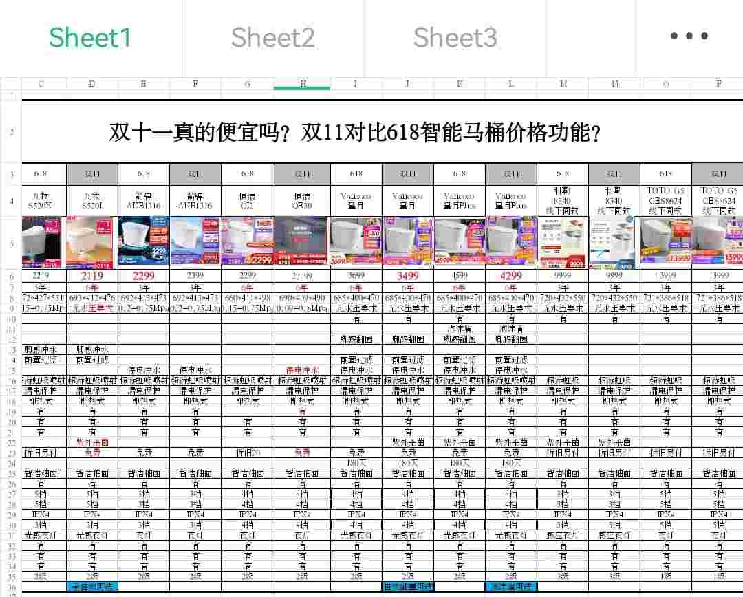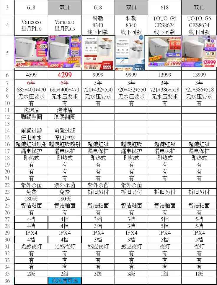👀老公真的是一个神奇的存在,让他分析一下618与双十一智能马桶的对比,第二天直接甩一张表格给我……看上去就很明显了✨