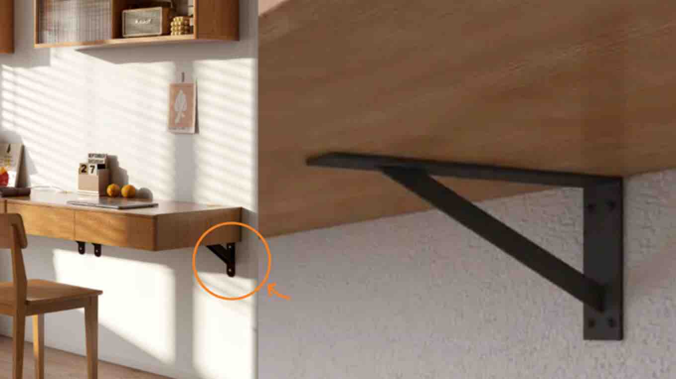 三角支架:在悬空书桌的腰部加入支架,让墙面与柜底形成稳定的三角形,提高书桌的承重能力。