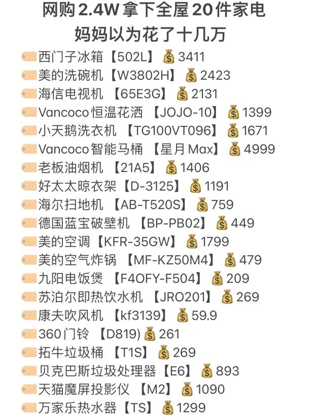 齐家网> 齐家装修论坛> 匠屋> 网购2.4W搞定全屋20件家电✅