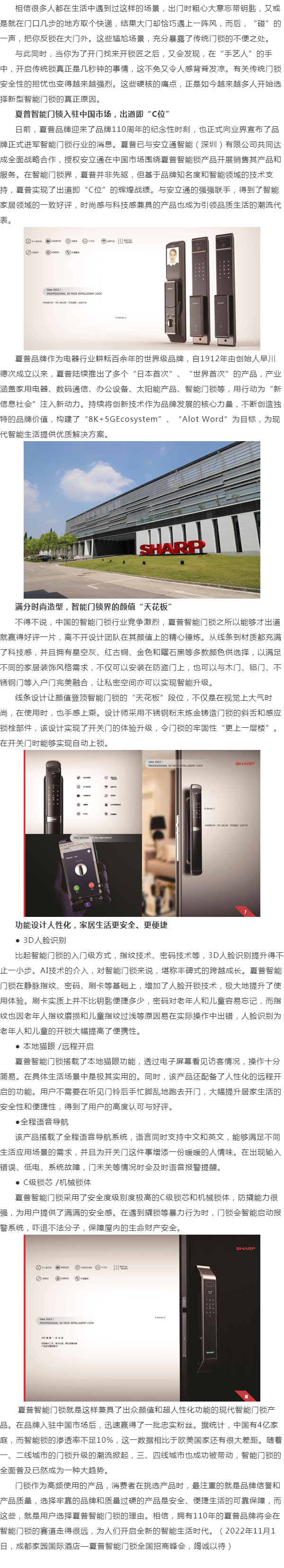出道即C位:夏普智能门锁引领消费升级,赋能门锁智时代