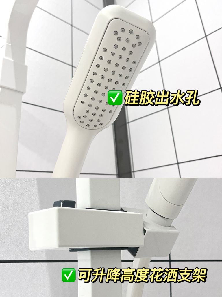 现在买花洒的必要条件就是可以调节淋浴杆高度的,这样可以满足全家人的不同身高需求。