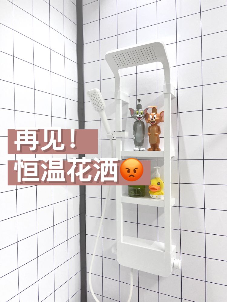 自带置物架的花洒,可以放一些沐浴用品,拿放更方便,一物两用,还能省钱~