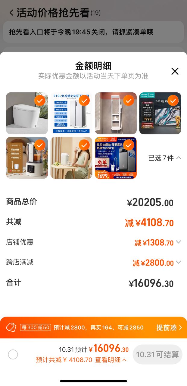 👀天哪我终于选完了‼️基本上想买的家电都搞定了, 我的清单大概包括了电视机,冰箱,洗烘套装,洗碗机,烟灶套装,智能马桶,花洒,扫地机等等……