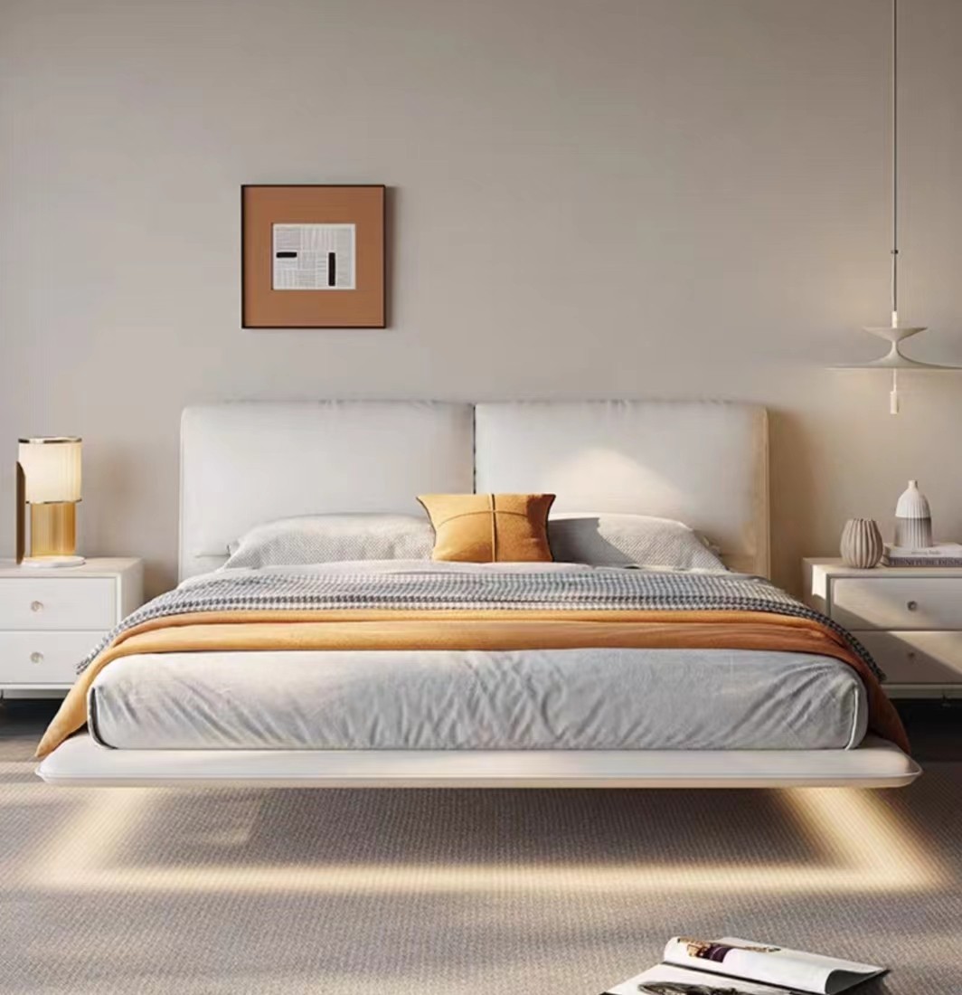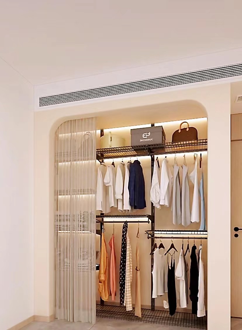 卧室不再用门槛石搭配木地板打理麻烦卧室还显小甲醛含量高采用瓷砖通铺 显宽敞还环保不再装传统木衣柜 价格昂贵甲醛多做挂墙式金属衣架 灵活收纳 实惠又环保搭配拱形垭口加纱帘 拿取方便不会夹手传统背景墙 费时费力还费钱直接粉刷奶白色乳胶漆简洁大方还耐看 最重要还显得卧室很温馨传统挂式空调 管线外露不美观换成风管机藏在吊顶里上方吹风不对人吹 舒适又美观墙面电视换大投影仪尺寸大价格低 躺着追剧更过瘾增加家庭氛围感 卧室秒变小影院床头不再做射灯 灯光直照刺眼让人头晕目眩改成两侧线条灯 光线柔和 还能增加氛围感床底两侧装独立感应灯带价格实惠安装便捷 还能增加氛围感晚上起来上卫生间 也不怕光线打扰到枕边人