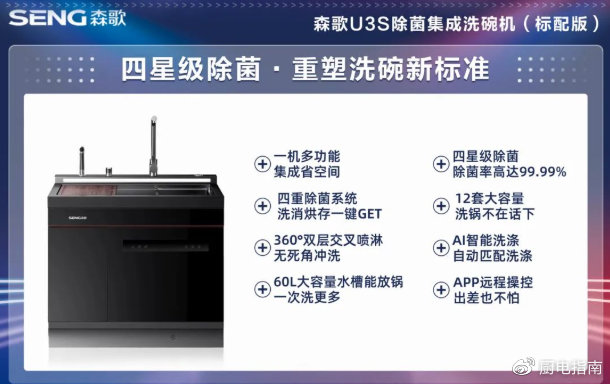 餐后的食具再交给森歌U3s集成洗碗机,75℃高温爆洗有效洗净碗筷上的顽固油污,360°交叉喷淋的上下喷淋臂贴合中餐餐具的洗涤需求,瓦解污渍的同时节能省水能力也同步提升。70℃循环对流热风烘干,保持餐具72小时干爽,防止大肠杆菌等有害细菌再生,除菌率超99.99%,达四星级除菌消毒标准。森歌U3s集成洗碗机的大容量可容纳下十二套餐具,也给厨房留下了更多的储存空间。