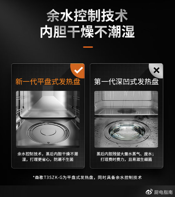 在享用美食后往往需要面对清洁的烦恼,的确该给集成灶的蒸箱、烤箱做个小小清洁,以避免污渍积累。而森歌T3SZK-G独立蒸烤升级款集成灶早已考虑到了这个问题,采用加热 余温烘干结合的余水控制专利技术,使用后加热盘内没有废水,清洁打理起来更加方便,用过之后顺手一擦,就和新的一样,还不容易滋生细菌。而且森歌T3SZK-G独立蒸烤升级款集成灶采用易清洁面板,防刮防油防指纹,让经常下厨的你在灶具清洁这件事上更省心。