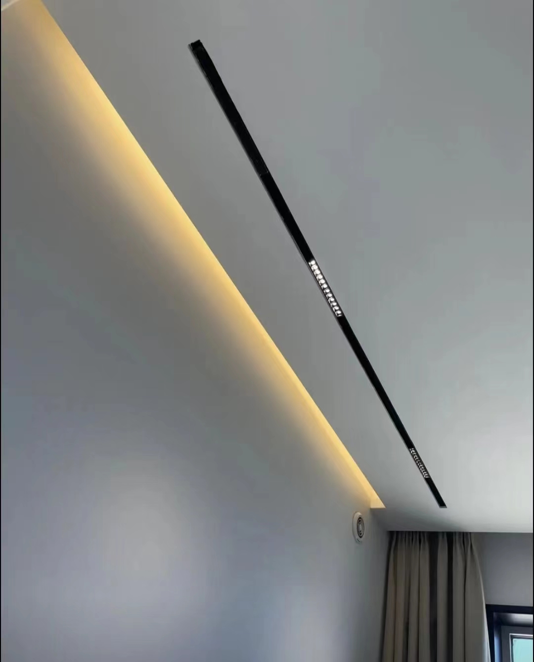 ①卧室放弃了传统的门槛石和木地板直接采用客厅同款瓷砖通铺 背景墙做了一米高的半墙嵌入色温3500k的灯带 卧室无主灯设计改用床的两侧安装线条灯和隐藏式射灯 墙面用纯白色乳胶漆粉刷搭配纯白色窗帘氛围感满满②床采用的是悬浮式床 床的下方自带感应灯带 两侧灯带都是独立的 晚上起床去卫生间再也不怕影响边上人休息 床尾铺上一条地毯上面在放置一个小小的懒人沙发 回到卧室哪哪都可以休息