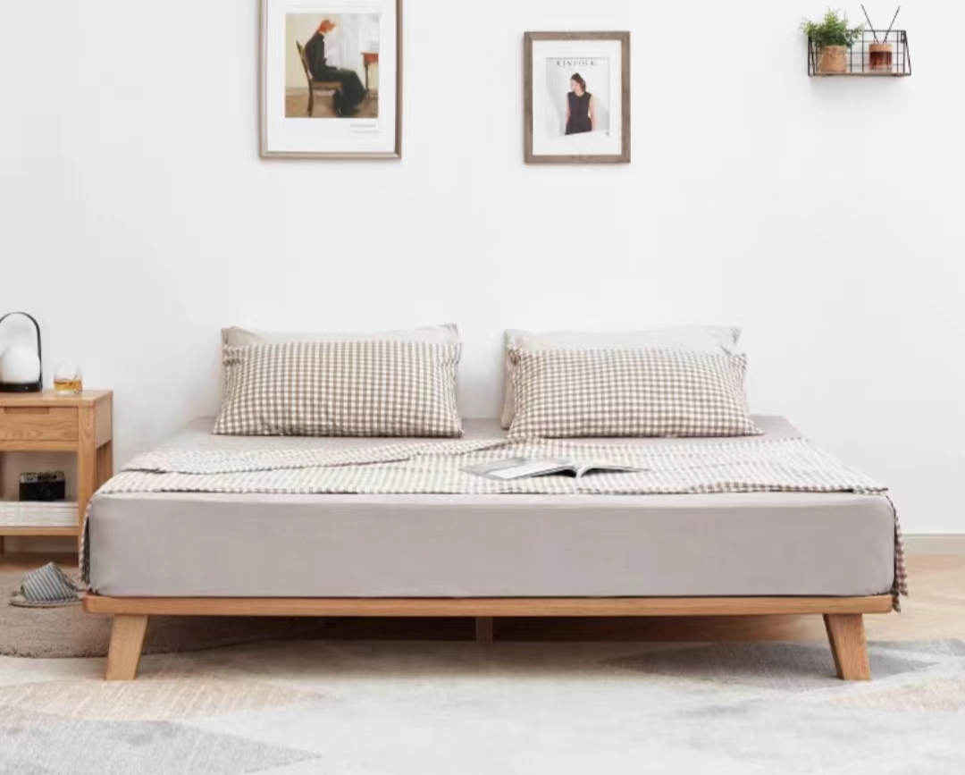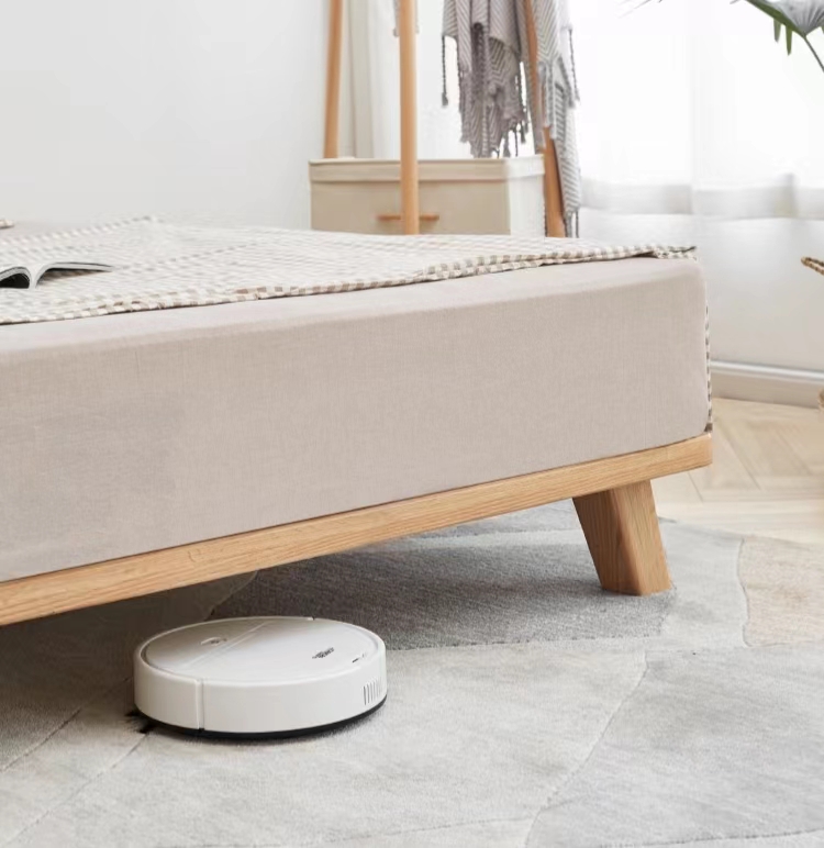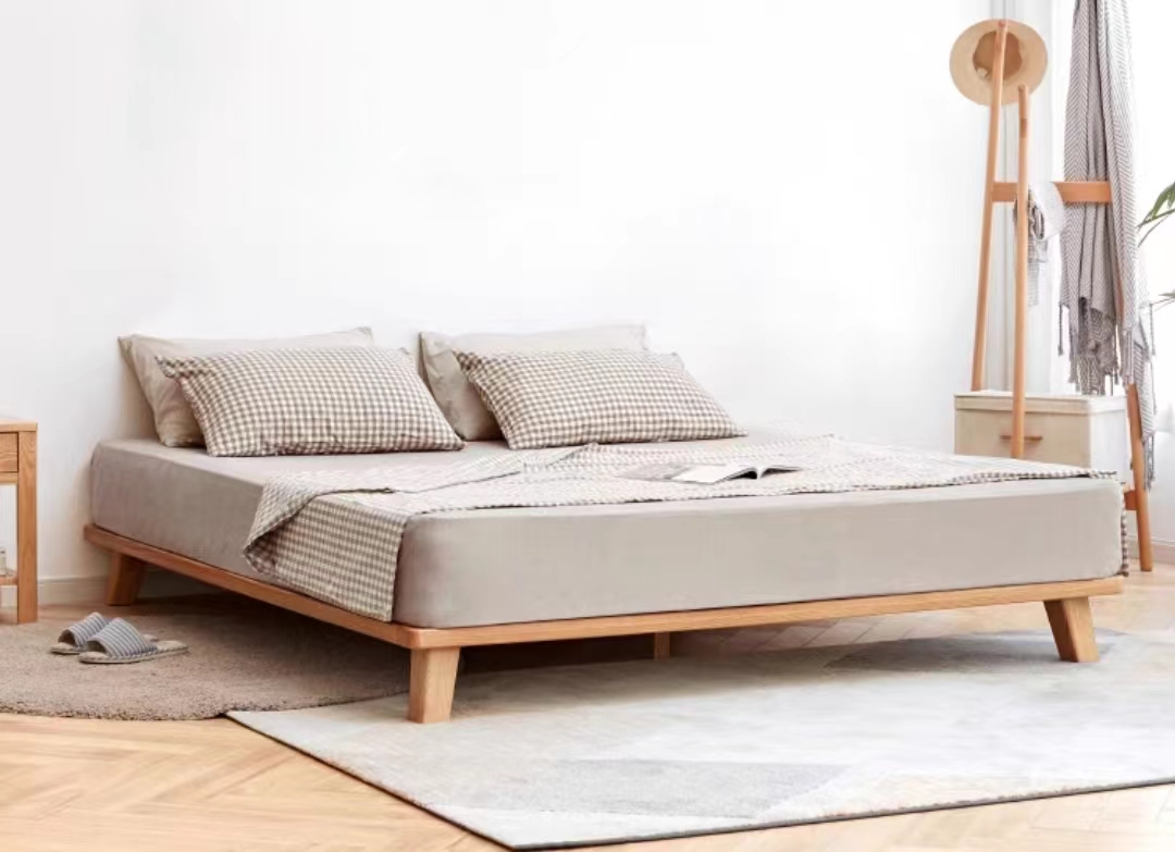 整块床板不透气床垫易发霉(不选) 选则排骨架床板透气性好可以有效防止床垫受潮 选择排骨架时要选静音平板或缝隙小于5cm的 缝隙大于5cm或是拱形排骨架会影响床垫寿命矮床脚会产生卫生死角不易清洁打扫 选10-15cm的高床脚不仅方便清洁 扫地机器人也能过进入床底清洁真皮床要选黄牛头层皮不易开裂还好打理 实木床选橡木、胡桃木、樱桃木、白蜡木不易变形使用寿命长垂直床脚会让床头无法齐平墙面走路绊脚 内收床脚不影响踢脚线不绊脚
