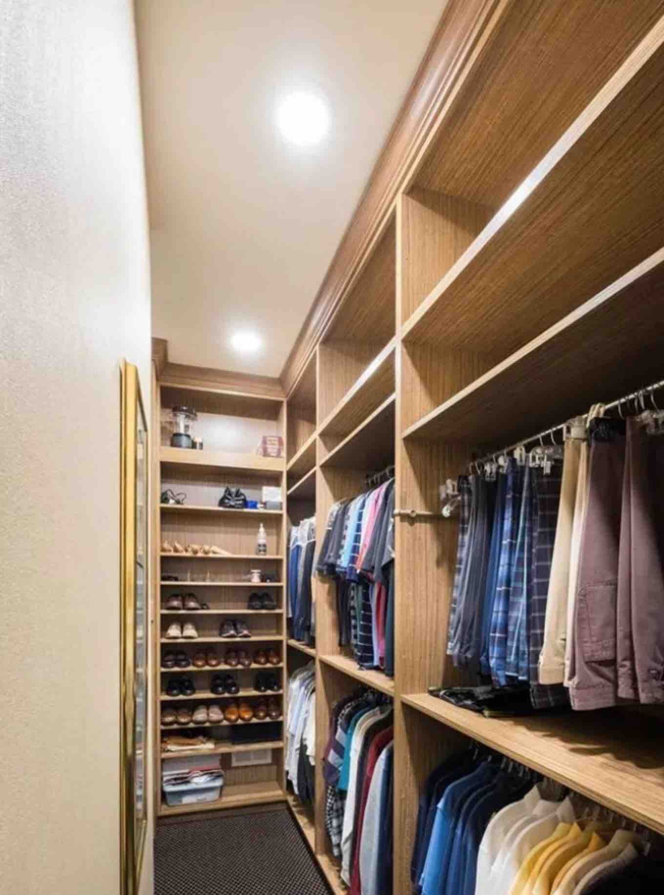 L型衣帽间背后砌墙,纯粹是占空间,因此可以不用砌墙。