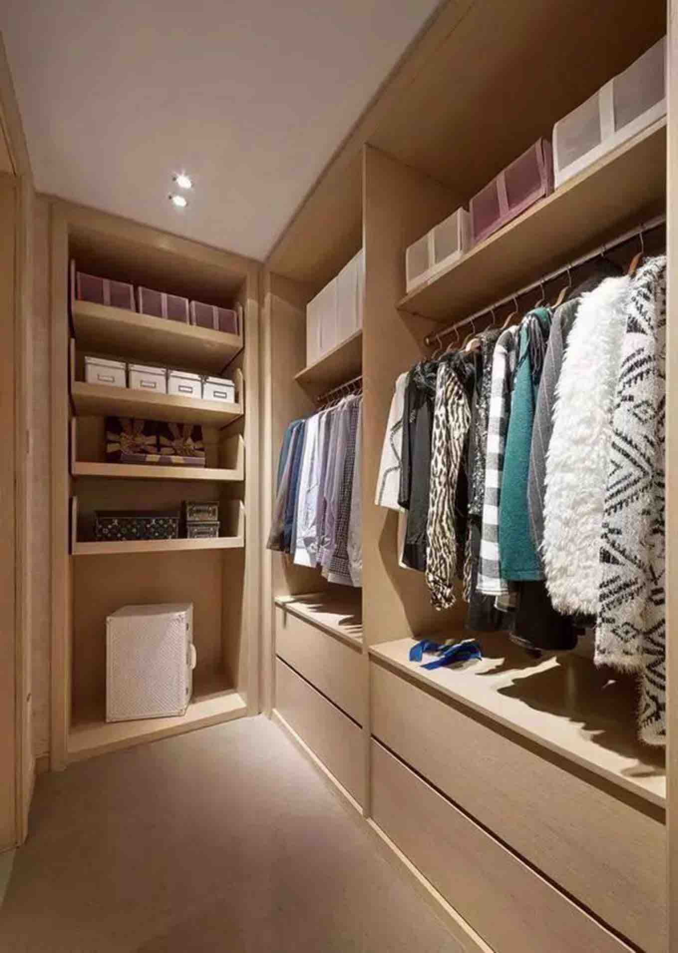 小户型因为总面积较小,一般情况下是没有衣帽间空间的。没有不代表不能有,我们完全可以通过合理规划来打造一个。不说打造一个多大的独立衣帽间,但2-3㎡的L型衣帽间是不成问题的。