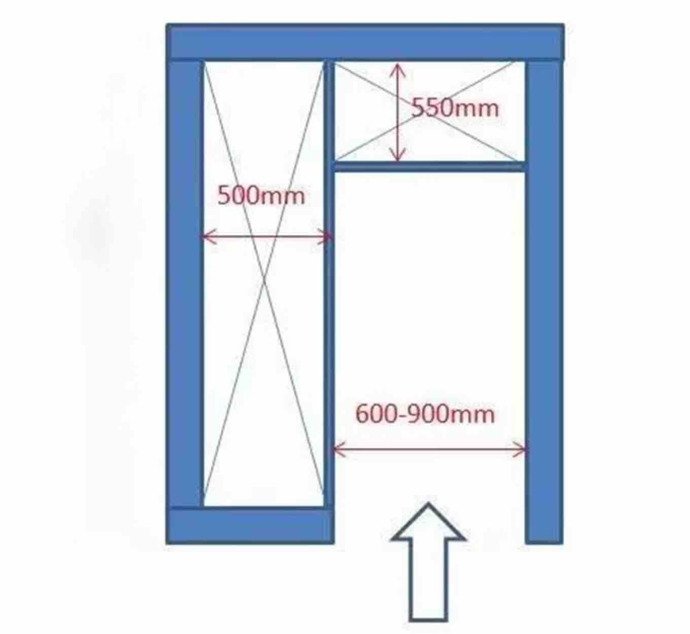 理论上过道的最窄宽度不能小于600mm。600mm大概是一个成年人双肩的宽度在宽一点点,小于这个数就需要侧身通过了。如果想舒服的在衣帽间拿取最高处或最低处的物品,宽度则需达到900-1200mm,这个宽度才能让我们蹲下、起立、转身自如。