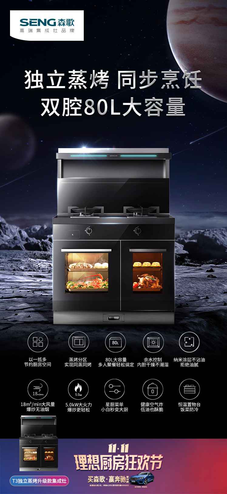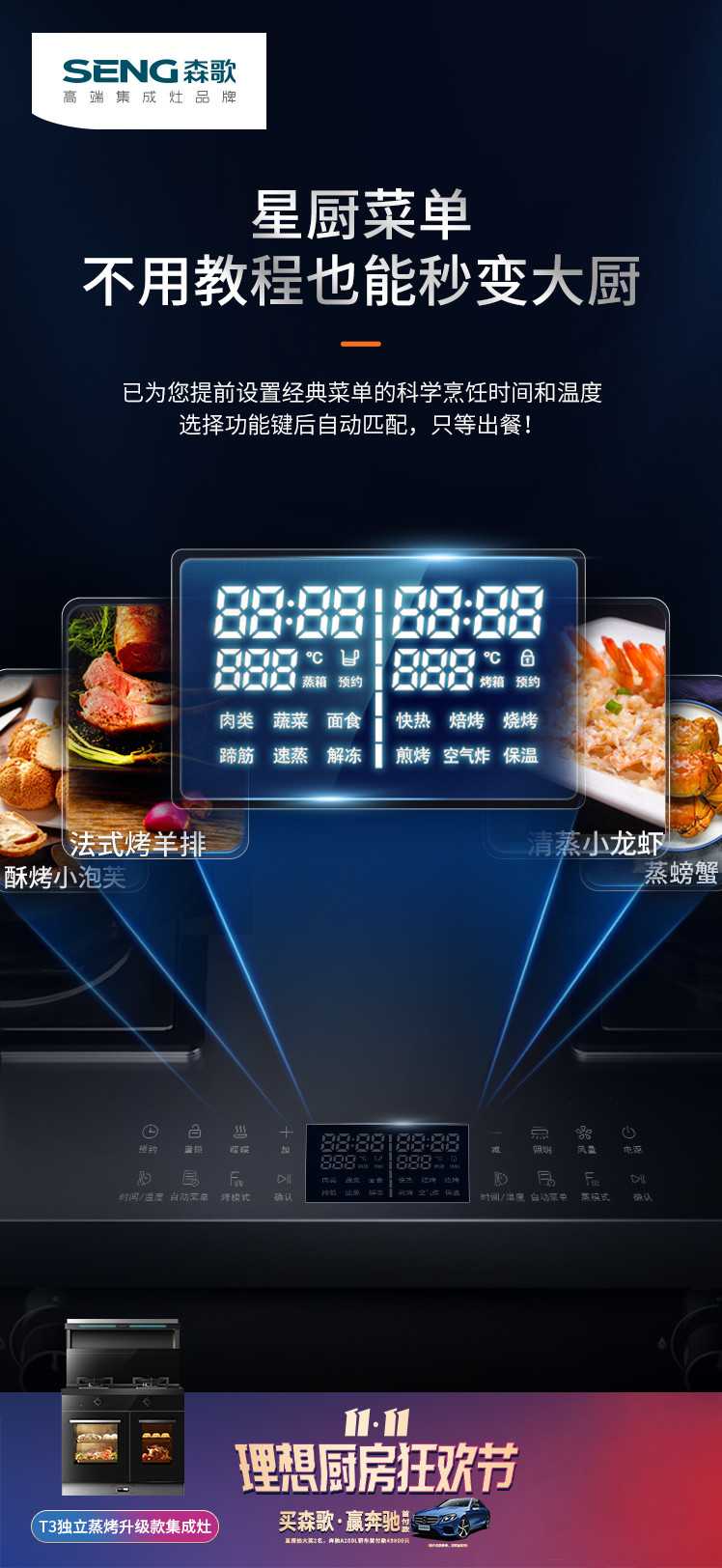 (森歌T3SZK-G独立蒸烤集成灶,星厨菜单)