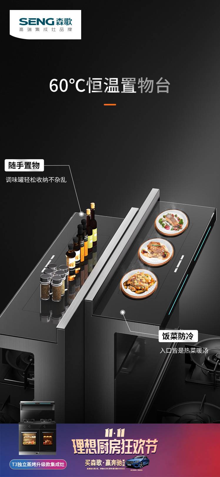 (森歌T3SZK-G独立蒸烤集成灶,60℃恒温置物台)