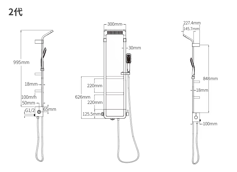 2.热水器到花洒的距离越短越好、这样可能保证热水尽快的从花酒出来