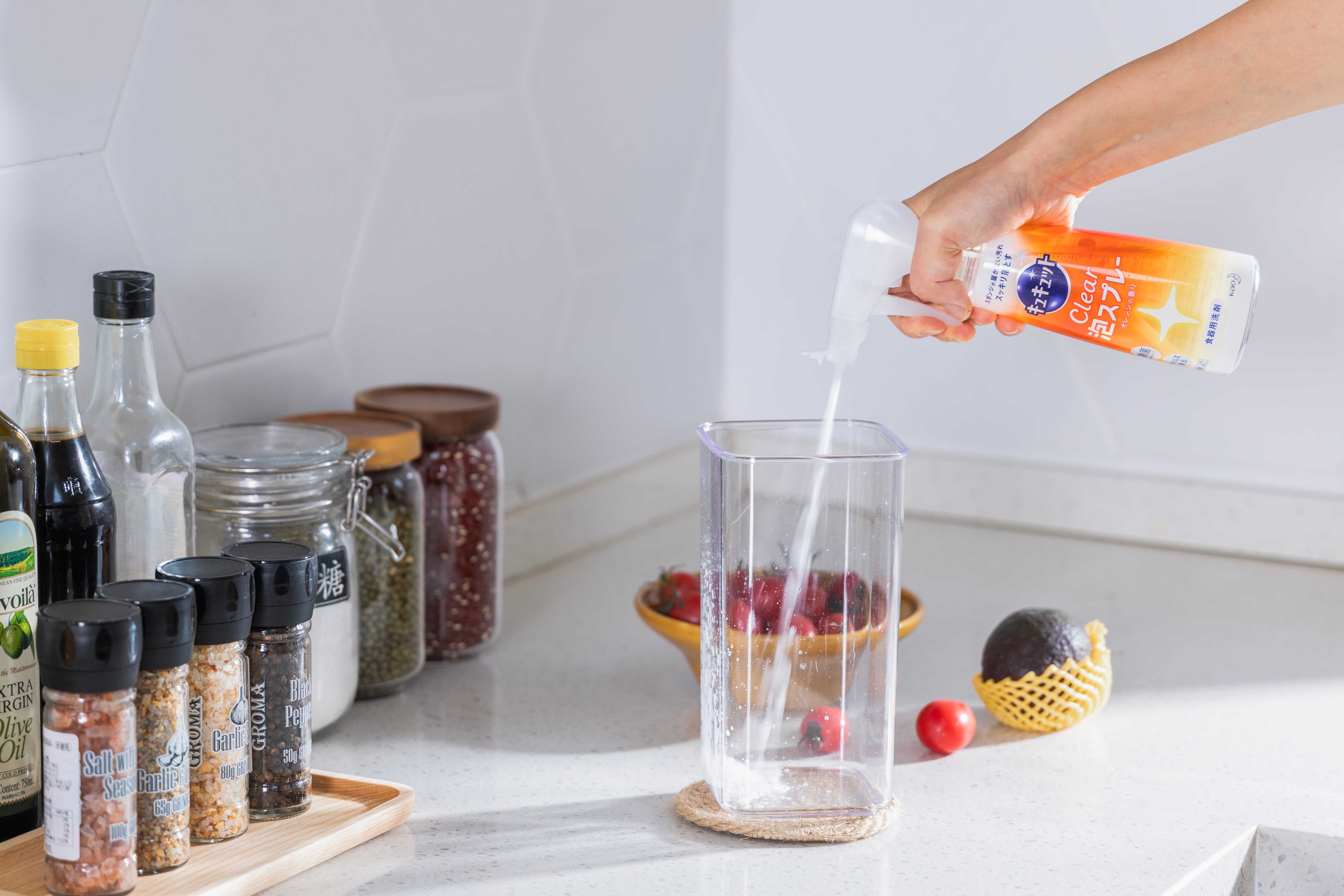来到厨房,发现杯子、水壶等都像是新的一样。除了使用洗碗机清洗日常碗筷之外,一些日常较难清洗到位的(例如保温杯内壁等)她也能轻松搞定。只见她微微一笑,“神器”在手,不愁污渍不走。原来她还发现了一款花王餐具清洁泡沫。即使是便当盒盖密封条、保温杯、茶壶嘴等一般难以触及且不便清洗的污渍,只需用喷嘴对着喷射后放置一会儿,都可以帮你轻松快捷地清除污渍。