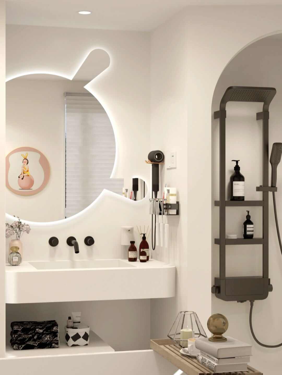 卫生间采用了微水泥的,再搭配兔子镜,也太好看💕啦~