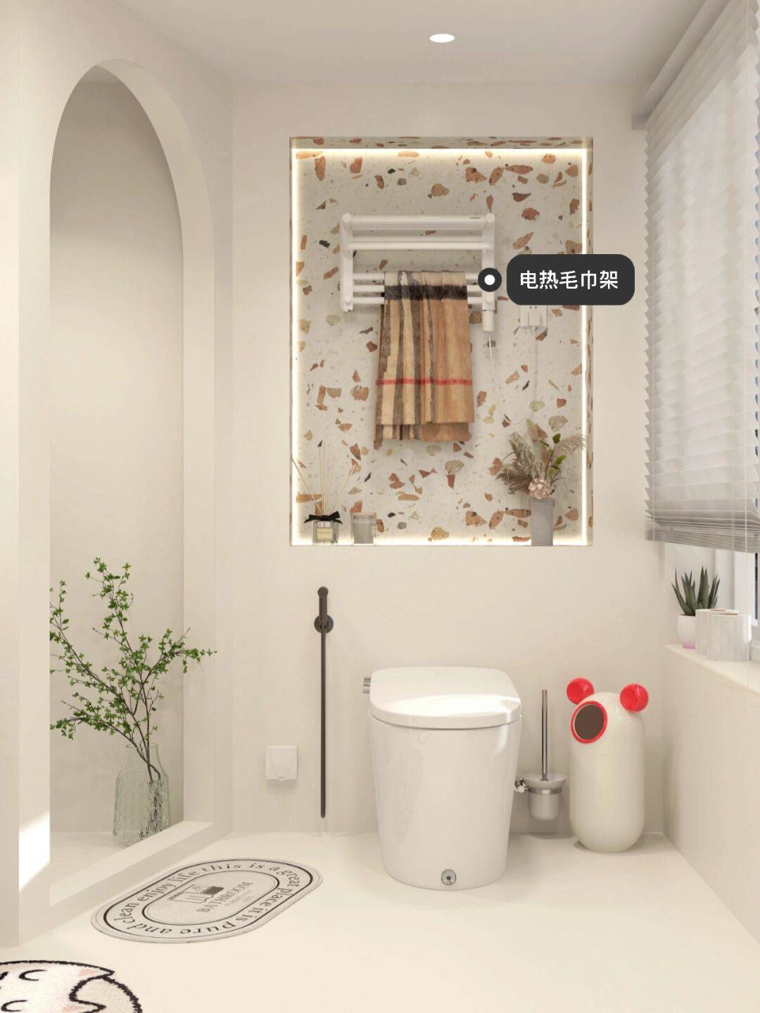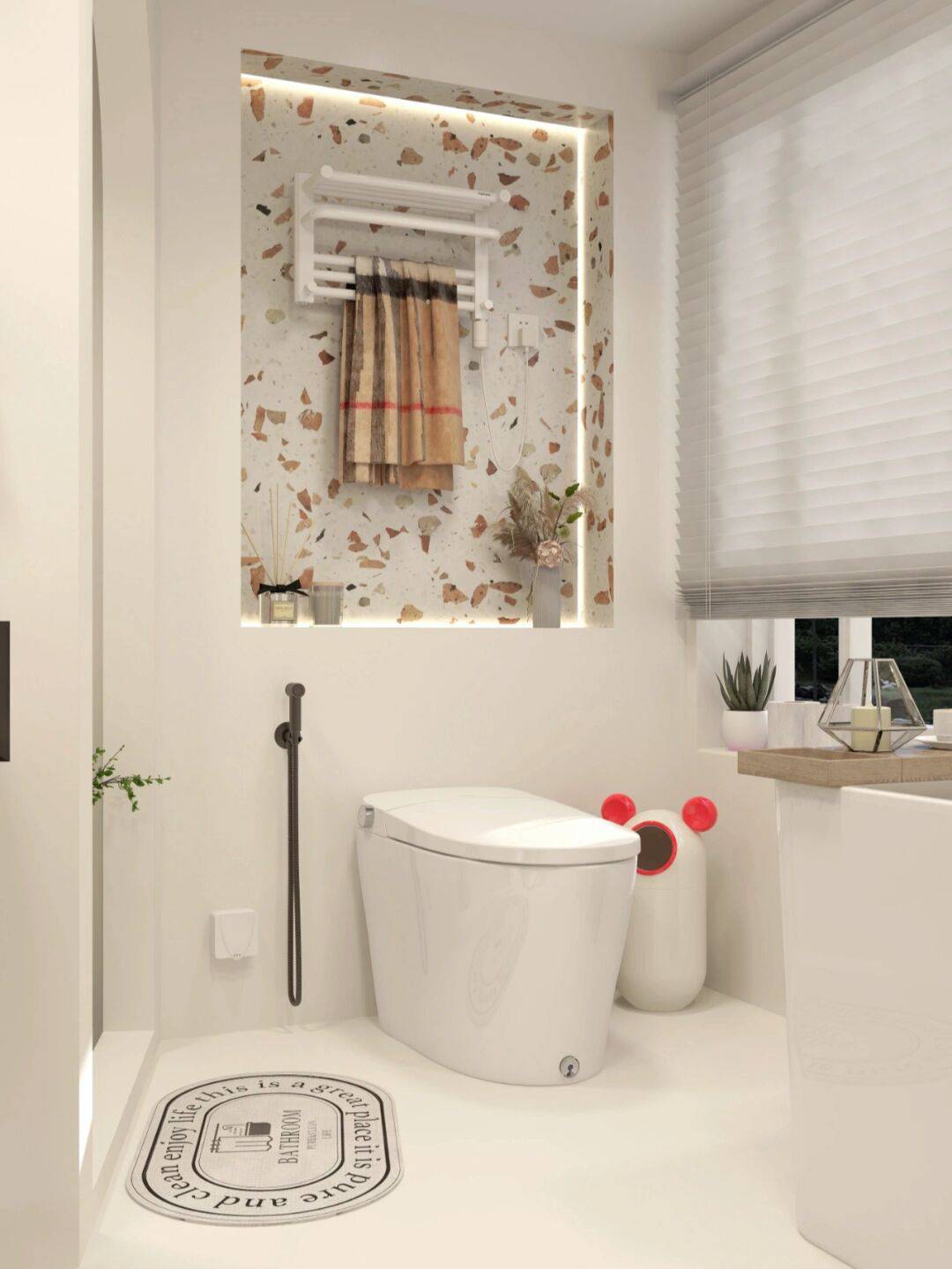 马桶区做了灯带,你们要的氛围感和高级感不就来了,奶fufu的浴室和水磨石也超搭✨