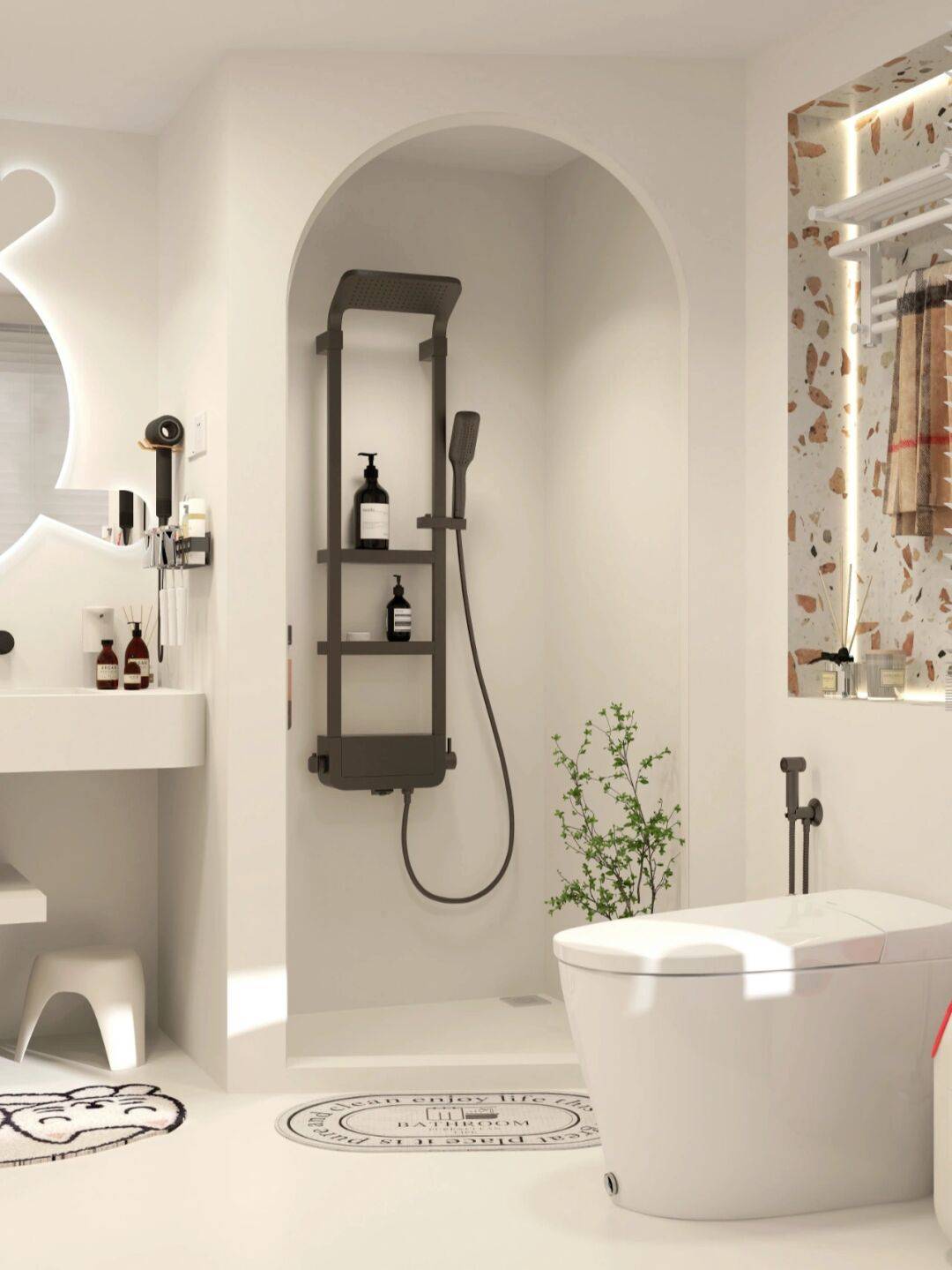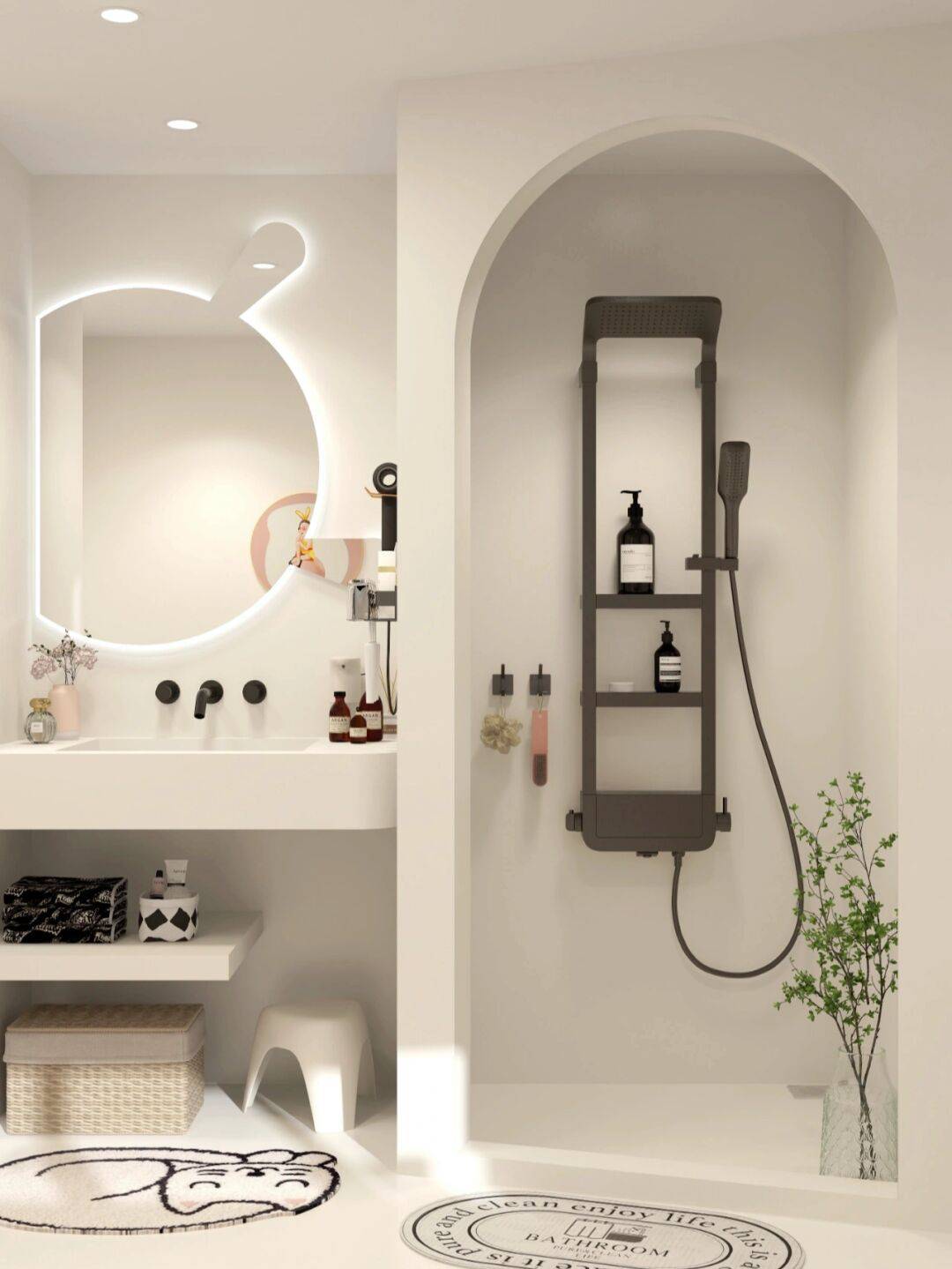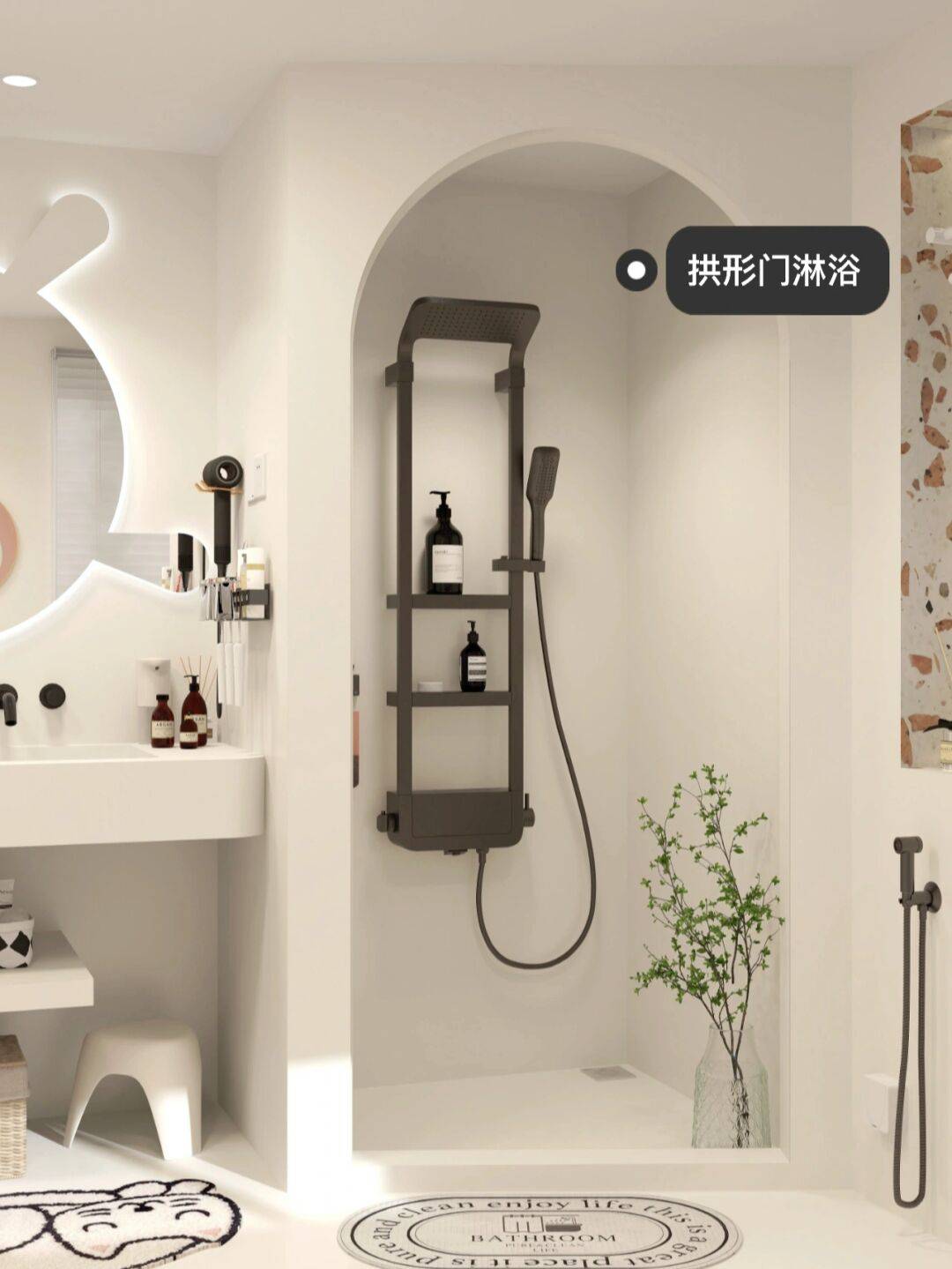 还有淋浴区,自砌的拱形门设计做干湿分离,配上可以置物的花洒简直不要太好看💕