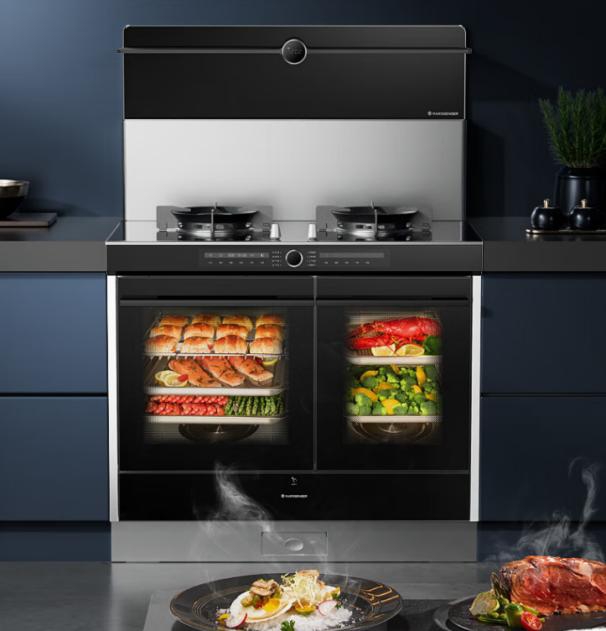 不仅如此,这款集成灶还拥有5.0kW蓝焱劲火2.0系统,带给我给力的爆炒体验,下柜搭载了80升大容量的蒸烤独立双腔,打造全新的烹饪体验,左腔蒸烤一体,蒸、烤各式大菜不在话下;右腔快速蒸,小容量腔体升温更快,快速出餐。家里有了这样一台集成灶,我的厨艺也如虎添翼,半小时就能搞定一桌菜。