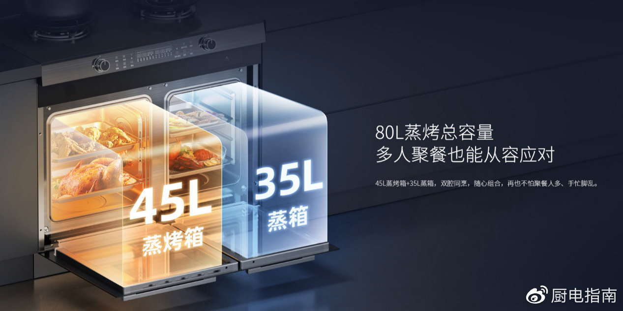家里来客人的时候,左烤右蒸或者双腔同蒸,一次能烹饪好几道完全不同的菜,个把小时就能上齐一桌菜,比起以前一锅一锅地做节省了很多时间,也更方便了。同时它还配备了一个60℃智能恒温的置物台,做完的菜可以放到上面保温,即使是冬天也能吃到一桌热气腾腾的晚饭。